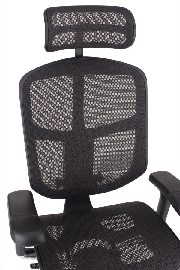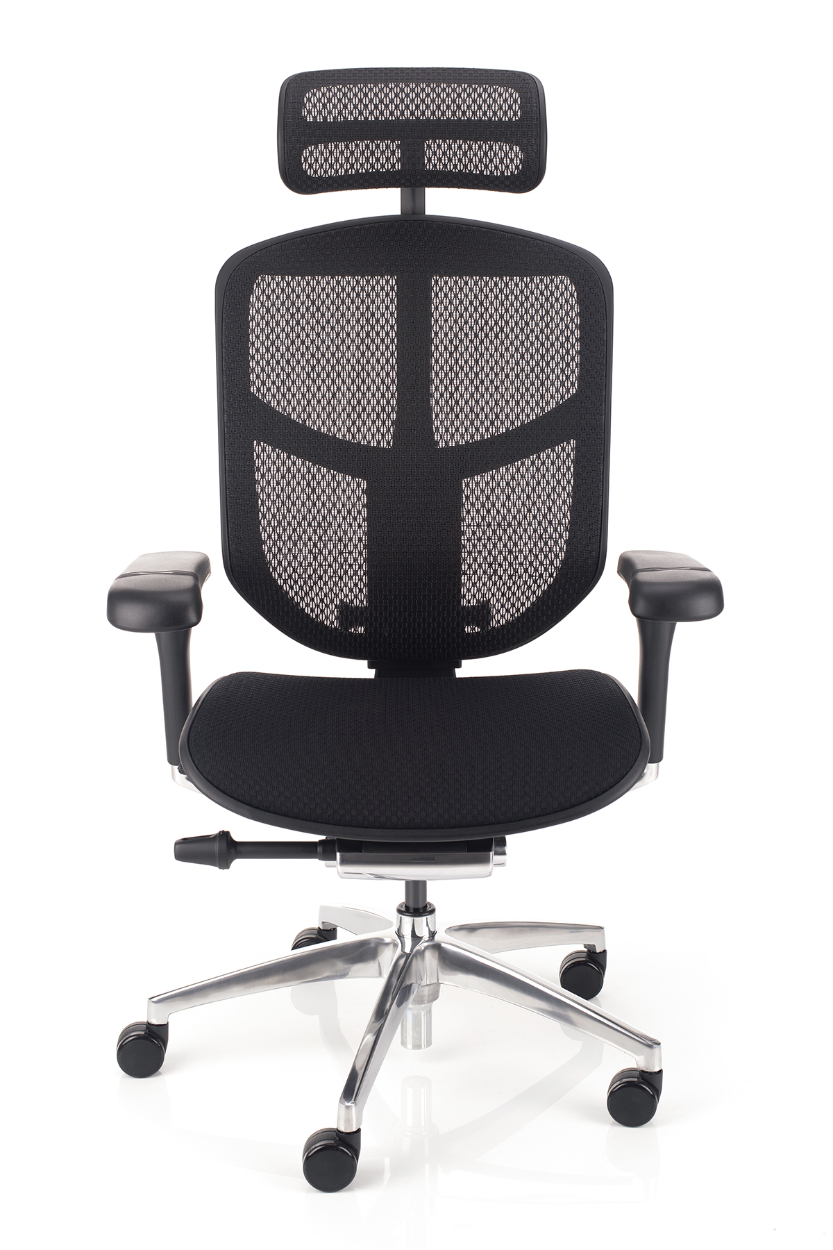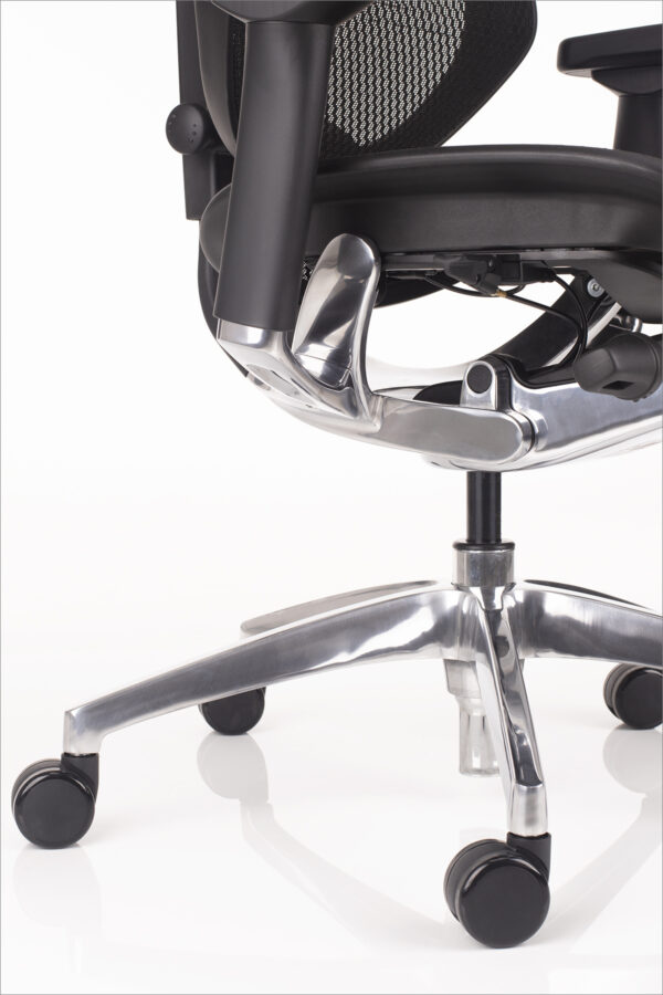 Njegov robusni, ali elegantni okvir od poliranog aluminija odiše prestižem i dodaje dašak ekskluzivnosti svakom uredu. Napredna višezonska mreža osigurava savršenu prozračnost i prilagodbu tijelu, omogućujući dugotrajnu udobnost bez kompromisa.