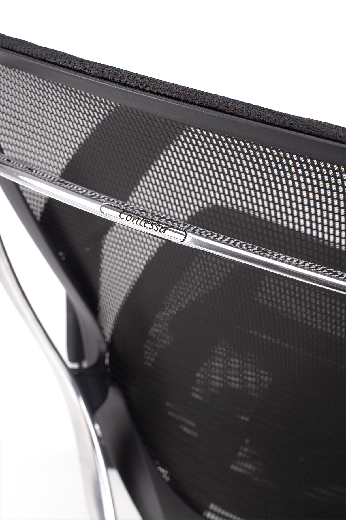Njegov ikonski dvostruki okvir naslona nježno grli leđa, pri čemu unutarnji okvir podupire kralježnicu, dok vanjski okvir pruža potporu ramenima i donjem dijelu leđa. Ova inovativna struktura omogućuje prirodan i opušten položaj sjedenja, a istovremeno smanjuje umor tijekom dugotrajnog rada. Contessa II opremljena je Nishijin mrežom, izrađenom tradicionalnom tehnikom tkanja iz Kyota. Snažna, ali fleksibilna mreža prilagođava se tijelu, omogućuje izvrsnu ventilaciju i stvara osjećaj lakoće, a vizualno naglašava elegantan, minimalistički dizajn.