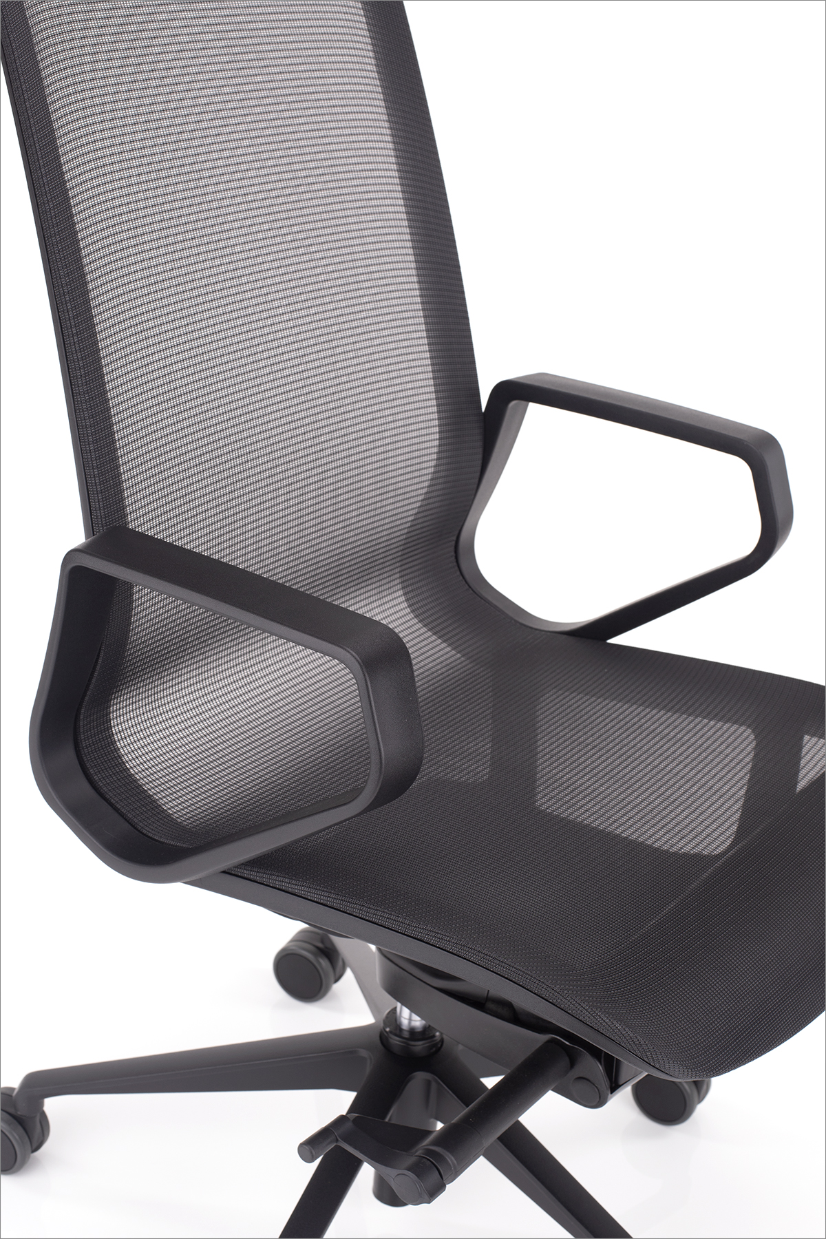 Naslon i sjedalo izrađeni su u potpunosti od visokokvalitetne zračne mreže, koja osigurava optimalnu ventilaciju i udobnost tijekom cijelog dana. Mrežasta struktura prilagođava se tijelu i pruža prirodnu potporu kralježnici, a istovremeno održava osjećaj svježine čak i tijekom duljeg sjedenja.
